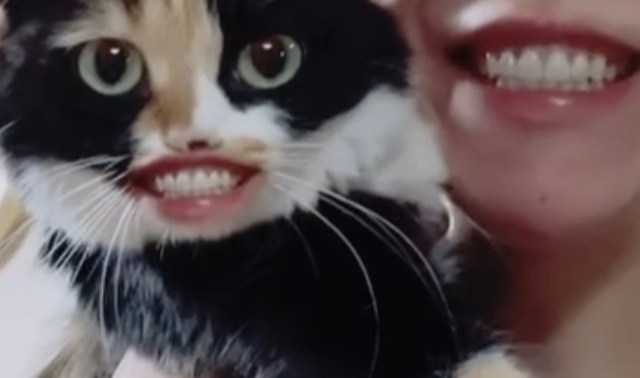 最近流行っているアプリで我が家の猫ちゃんも笑わせてみました🦷
